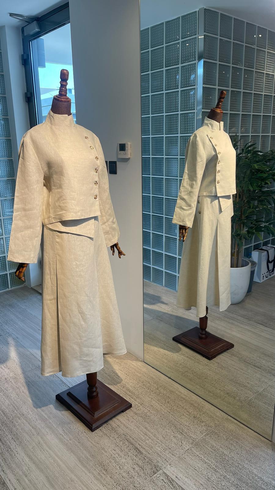 بدلة لينن جاكيت مع تنورة
